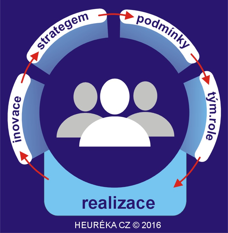 Implementace plánu je založena na pružnosti průběžné zpětné vazby, která pracuje s hodnotovými a postojovými složkami projektových aktérů.